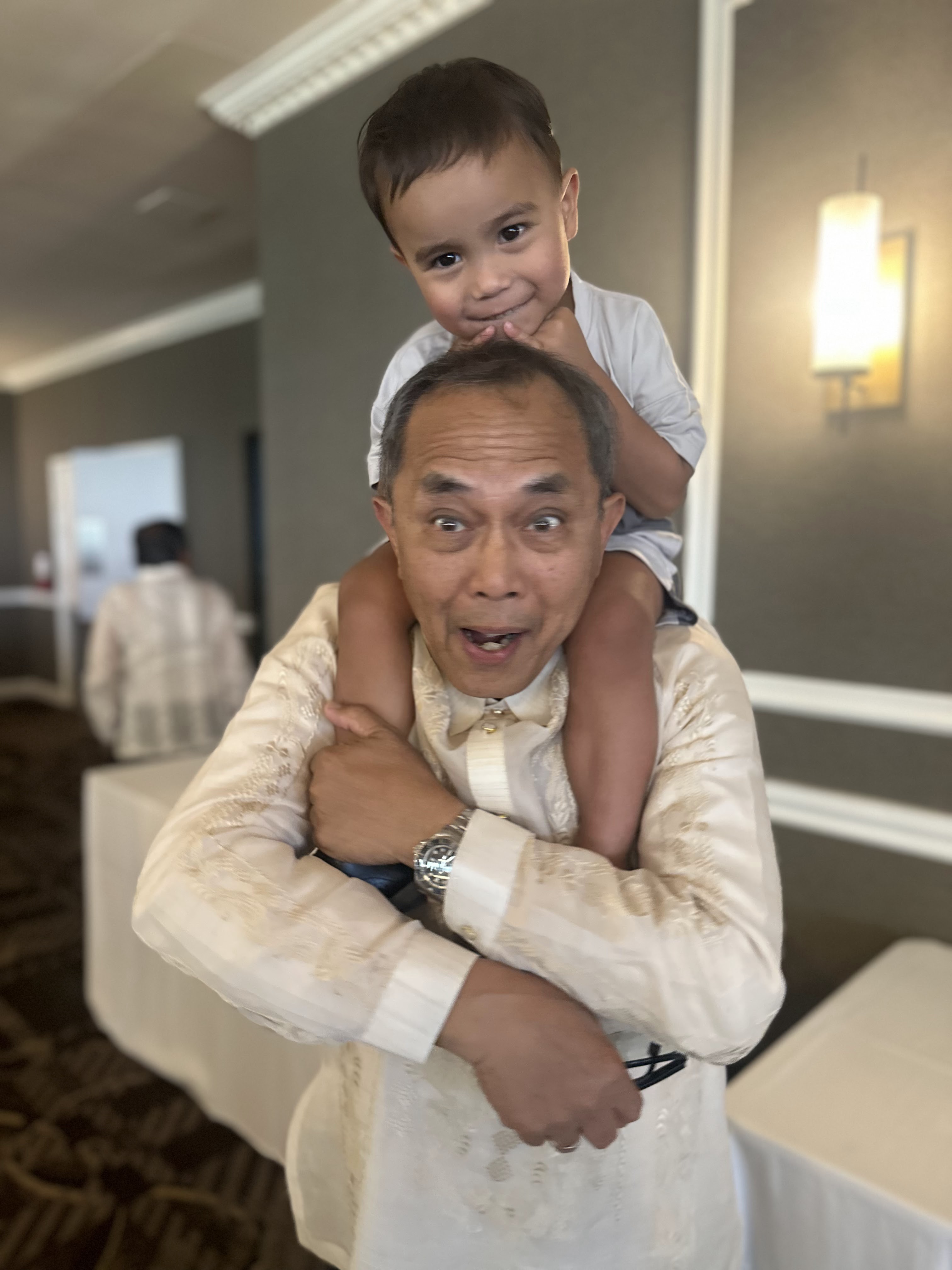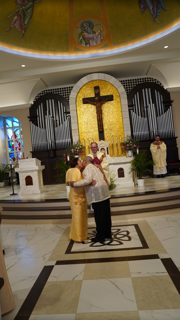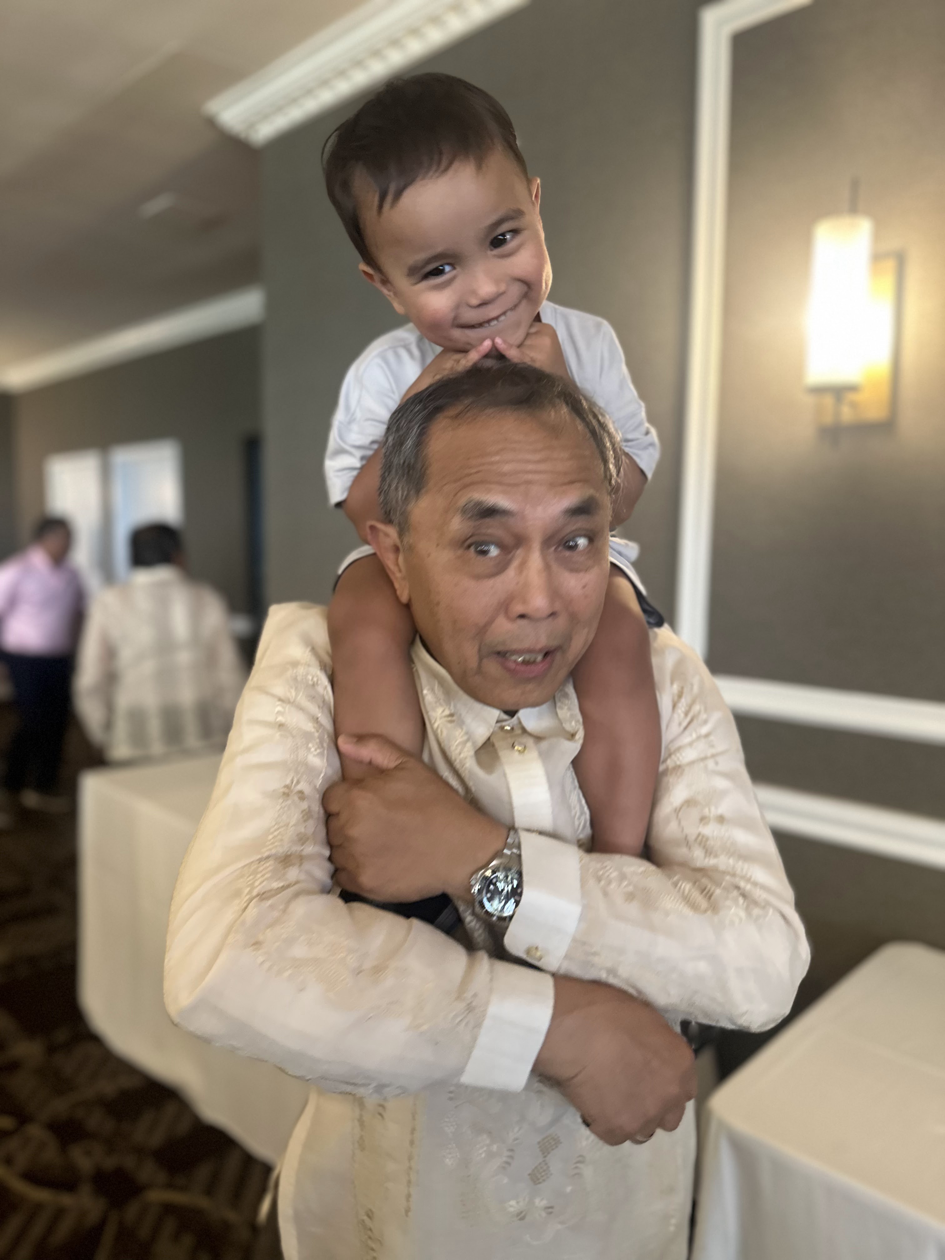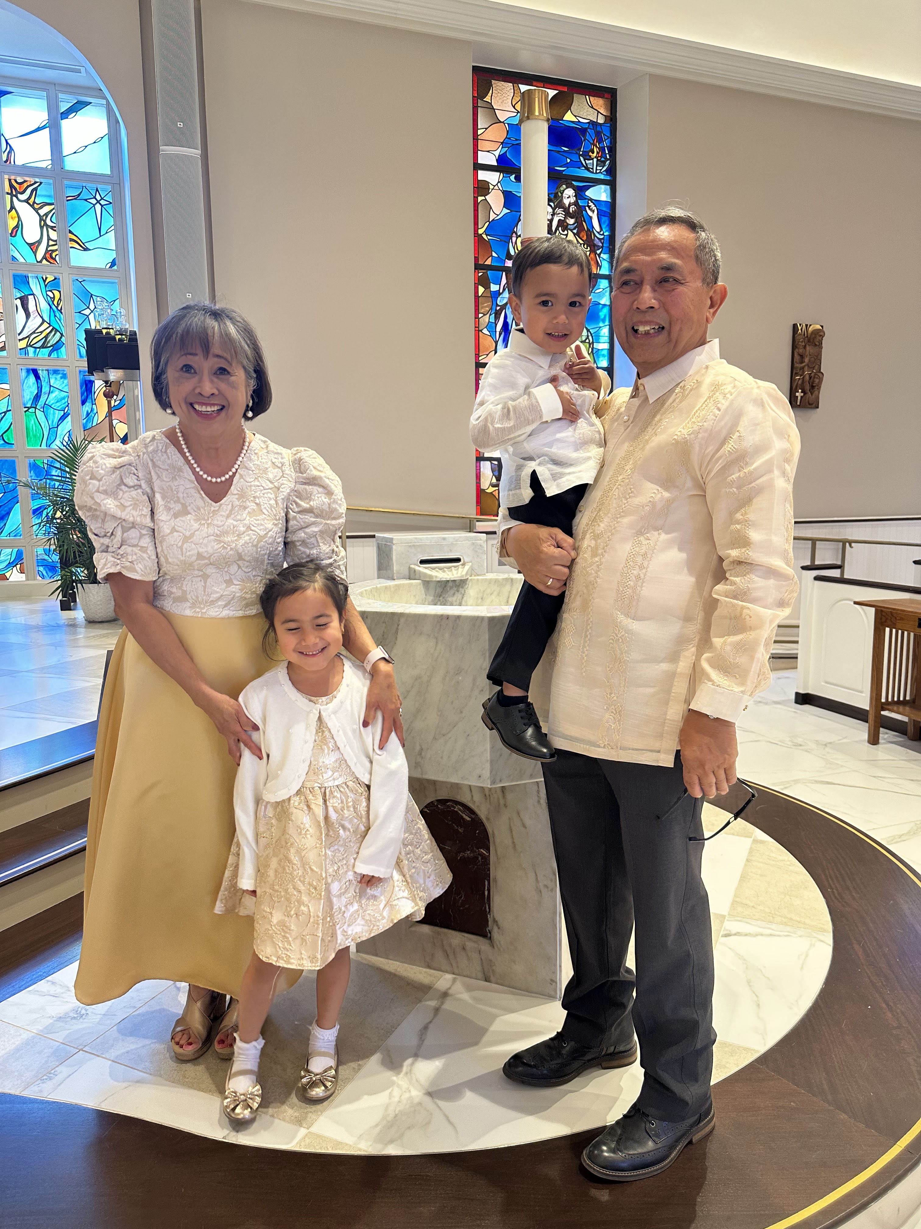 After a while, I looked up from holding Jen and the kids. My brother Brian stood at the foot of the steps. His face crumpled into tears as well. I went down and hugged him and cried. Over this past weekend, I explained to him, one of the great joys of my life. Seeing Mom and Dad’s utter and sheer joy with their grandchildren. One by one, seeing their faces overcome with happiness as they held little bundles. Then waddling toddlers, then small children and so on. It was something my close friend Steve had once said. How he loved being able to give his parents that. To be able to somehow give them joy. I loved, and love it still too. Although we were worried for William from the beginning, including a tearful baptism in the middle of his NICU, that we rushed because we thought William might pass away any minute, with every moment afterwards I was amazed to see the gift of a grandson to his grandparents. The first time they held him, I think was with yellow isolation gowns. We have pictures of their beaming and proud faces. Memories of them visiting us in California, seeing him at school, or getting on the bus, taking him for walks at home after we moved back to Maryland, being there for his First Communion, and so many more. Sometimes even just walking with him in the fading orange and red and yellows of a summer sunset, it was always so pure in joyful emotion.